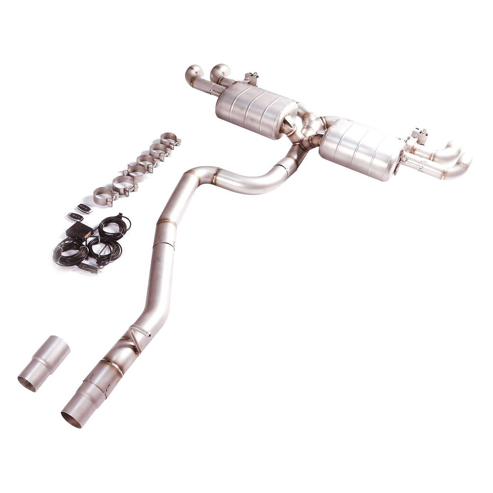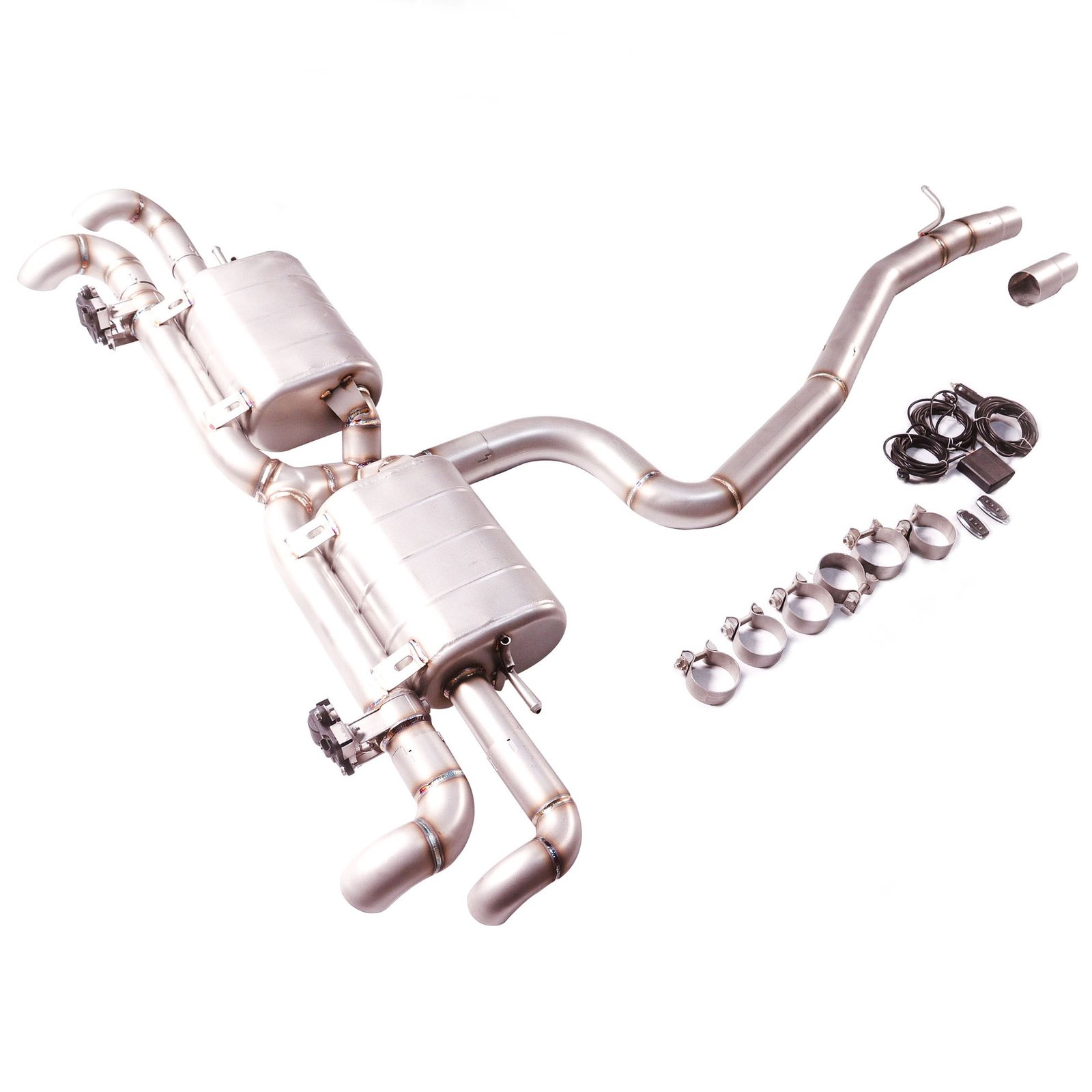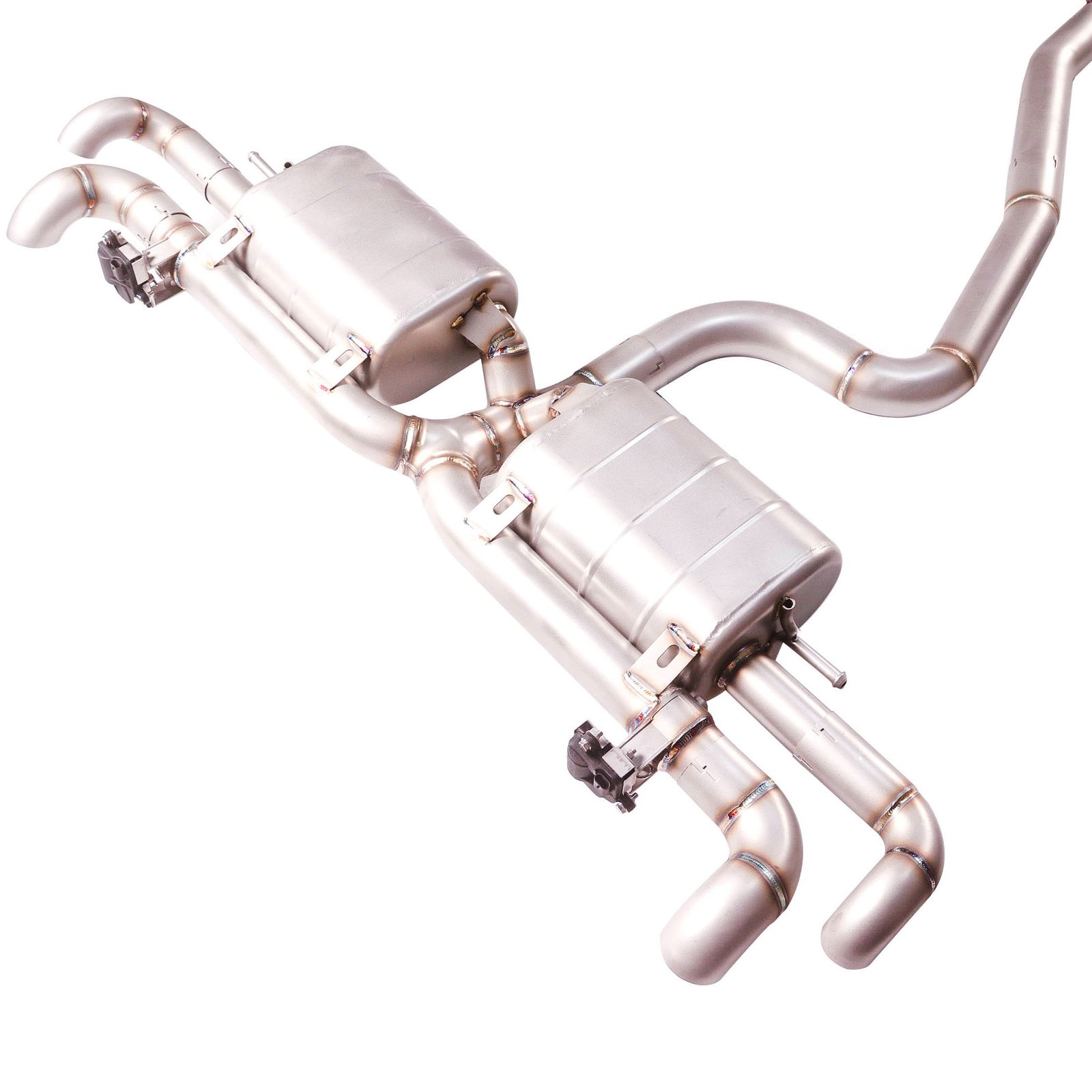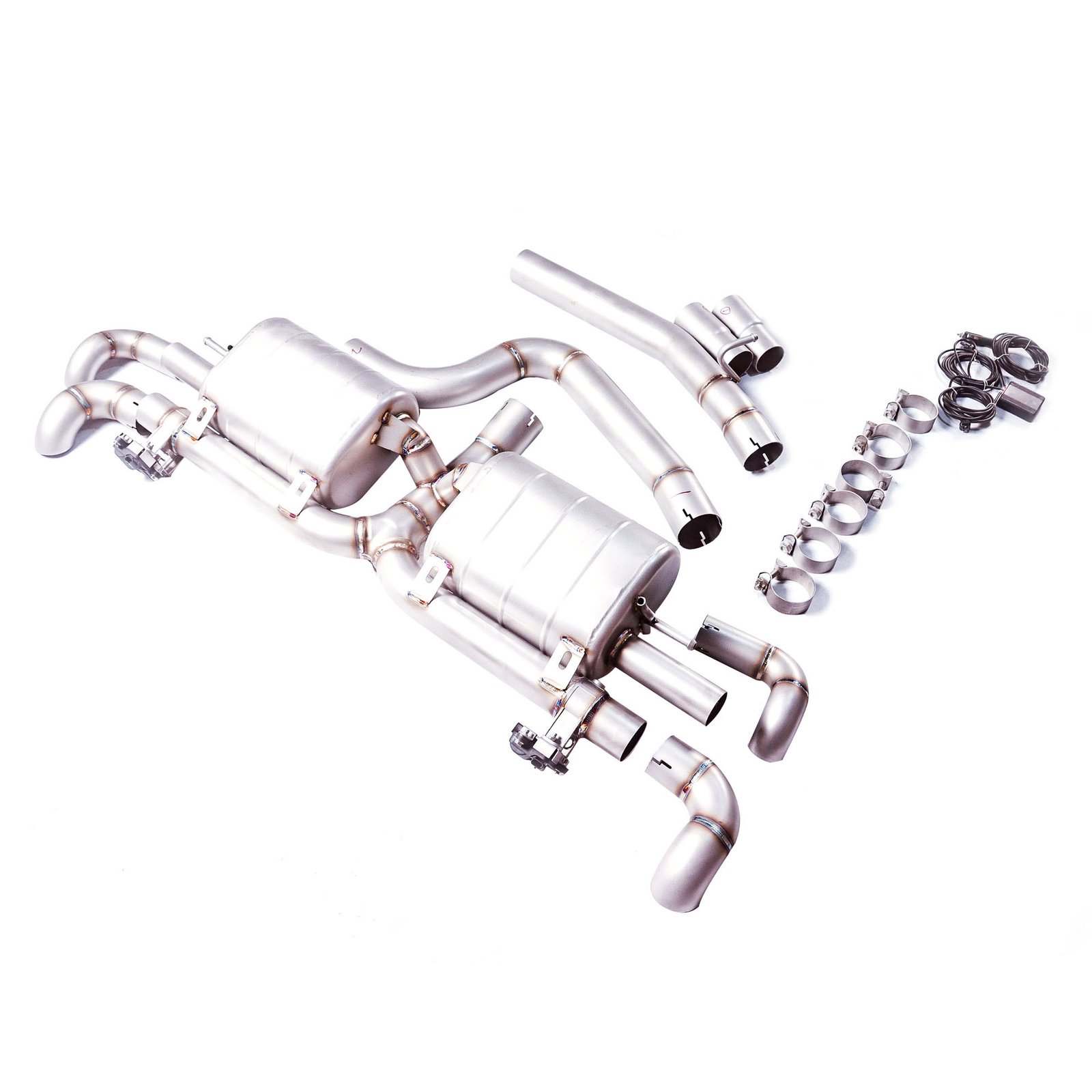 Install performance exhaust system, aligning with existing mounting points.